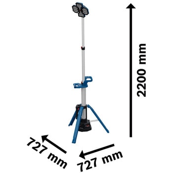 最大高さ2.2mの高さから照射します。最大5,000ルーメンで抜群の明るさです。3段階の明るさ調整ができます。ヘッドは垂直方向に243°回転、水平方向に117.5°旋回、サイドライト120°