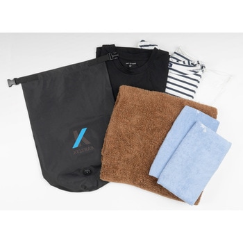 防水仕様でレインンウェアや濡れた物、または濡れると困る着替えやタオル等が収納可能です。付属バルブの開閉により中の空気を抜く圧縮が可能。よりコンパクトに収納できます。底面ハンドルにより収納した物が取り出しやすい。1泊分の着替えやタオルの収納、仕分けができる容量10Lサイズです。