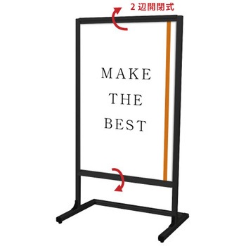 ブラックフラットオープンメッセージスタンドA3縦縦片面 キャスターセット