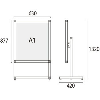 用途【展示角度を調節可能】展示するポスターの内容に合わせて、展示パネルの傾斜角度を0~35度まで調節できます。遠方からのアイキャッチ重視なら垂直展示、近くでじっくり見せたいなら見下ろせる傾斜展示がおすすめです。角度の調節は工具も必要なく簡単に行えます。【ポスターの交換方法】ポスターの交換は、本体上部の左右にあるビスを取り外し、上辺のフレームを引き抜いて面板とアクリルカバーの間にポスターをセットするだけです。【キャスター付きオプション】移動に便利なキャスター付きオプションもございます。(ご注文時にお申し付け下さい)材質パネル・本体:アルミ押出し材/アルマイト仕上(シルバー)、脚部:縦パイプ/アルミ押出し材/アルマイト仕上(シルバー) 横パイプ/ステンレスパイプ #400(シルバー)、面板:アルミ複合板(白)3mm厚、表面カバー:アクリル 透明1.5mm厚幅(mm)630質量(kg)7.2色シルバー高さ(mm)1320奥行(mm)420内容量1台(7.2kg)