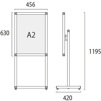 用途【展示角度を調節可能】展示するポスターの内容に合わせて、展示パネルの傾斜角度を0~35度まで調節できます。遠方からのアイキャッチ重視なら垂直展示、近くでじっくり見せたいなら見下ろせる傾斜展示がおすすめです。角度の調節は工具も必要なく簡単に行えます。【ポスターの交換方法】ポスターの交換は、本体上部の左右にあるビスを取り外し、上辺のフレームを引き抜いて面板とアクリルカバーの間にポスターをセットするだけです。【キャスター付きオプション】移動に便利なキャスター付きオプションもございます。(ご注文時にお申し付け下さい)材質パネル・本体:アルミ押出し材/アルマイト仕上(シルバー)、脚部:縦パイプ/アルミ押出し材/アルマイト仕上(シルバー) 横パイプ/ステンレスパイプ #400(シルバー)、面板:アルミ複合板(白)3mm厚、表面カバー:アクリル 透明1.5mm厚幅(mm)456質量(kg)5.2色シルバー高さ(mm)1195奥行(mm)420内容量1台(5.2kg)