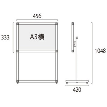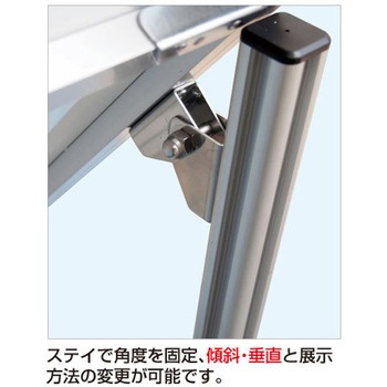 用途【展示角度を調節可能】展示するポスターの内容に合わせて、展示パネルの傾斜角度を0~35度まで調節できます。遠方からのアイキャッチ重視なら垂直展示、近くでじっくり見せたいなら見下ろせる傾斜展示がおすすめです。角度の調節は工具も必要なく簡単に行えます。【ポスターの交換方法】ポスターの交換は、本体上部の左右にあるビスを取り外し、上辺のフレームを引き抜いて面板とアクリルカバーの間にポスターをセットするだけです。【キャスター付きオプション】移動に便利なキャスター付きオプションもございます。(ご注文時にお申し付け下さい)材質パネル・本体:アルミ押出し材/アルマイト仕上(シルバー)、脚部:縦パイプ/アルミ押出し材/アルマイト仕上(シルバー) 横パイプ/ステンレスパイプ #400(シルバー)、面板:アルミ複合板(白)3mm厚、表面カバー:アクリル 透明1.5mm厚幅(mm)456質量(kg)4.5色シルバー高さ(mm)1048奥行(mm)420内容量1台(4.5kg)