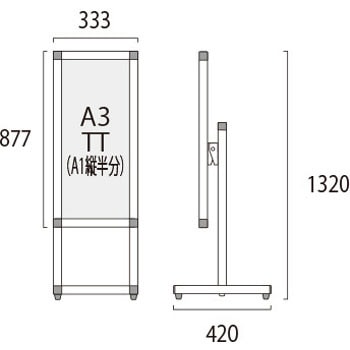 用途【展示角度を調節可能】展示するポスターの内容に合わせて、展示パネルの傾斜角度を0~35度まで調節できます。遠方からのアイキャッチ重視なら垂直展示、近くでじっくり見せたいなら見下ろせる傾斜展示がおすすめです。角度の調節は工具も必要なく簡単に行えます。【ポスターの交換方法】ポスターの交換は、本体上部の左右にあるビスを取り外し、上辺のフレームを引き抜いて面板とアクリルカバーの間にポスターをセットするだけです。【キャスター付きオプション】移動に便利なキャスター付きオプションもございます。(ご注文時にお申し付け下さい)材質パネル・本体:アルミ押出し材/アルマイト仕上(シルバー)、脚部:縦パイプ/アルミ押出し材/アルマイト仕上(シルバー) 横パイプ/ステンレスパイプ #400(シルバー)、面板:アルミ複合板(白)3mm厚、表面カバー:アクリル 透明1.5mm厚幅(mm)333質量(kg)5.7色シルバー高さ(mm)1320奥行(mm)420内容量1台(5.7kg)