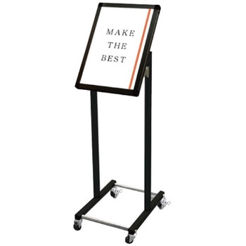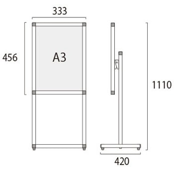用途【展示角度を調節可能】展示するポスターの内容に合わせて、展示パネルの傾斜角度を0~35度まで調節できます。遠方からのアイキャッチ重視なら垂直展示、近くでじっくり見せたいなら見下ろせる傾斜展示がおすすめです。角度の調節は工具も必要なく簡単に行えます。【ポスターの交換方法】ポスターの交換は、本体上部の左右にあるビスを取り外し、上辺のフレームを引き抜いて面板とアクリルカバーの間にポスターをセットするだけです。【キャスター付きオプション】移動に便利なキャスター付きオプションもございます。(ご注文時にお申し付け下さい)材質パネル・本体:アルミ押出し材/アルマイト仕上(ブラック)、脚部:縦パイプ/アルミ押出し材/アルマイト仕上(ブラック) 横パイプ/ステンレスパイプ #400(シルバー)※ブラックシリーズの脚部横パイプはシルバーです。、面板:アルミ複合板(白)3mm厚、表面カバー:アクリル 透明1.5mm厚幅(mm)333質量(kg)4.5色ブラック高さ(mm)1110奥行(mm)420内容量1台(4.5kg)