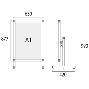 用途【展示角度を調節可能】展示するポスターの内容に合わせて、展示パネルの傾斜角度を0~35度まで調節できます。遠方からのアイキャッチ重視なら垂直展示、近くでじっくり見せたいなら見下ろせる傾斜展示がおすすめです。角度の調節は工具も必要なく簡単に行えます。【ポスターの交換方法】ポスターの交換は、本体上部の左右にあるビスを取り外し、上辺のフレームを引き抜いて面板とアクリルカバーの間にポスターをセットするだけです。【キャスター付きオプション】移動に便利なキャスター付きオプションもございます。(ご注文時にお申し付け下さい)材質パネル・本体:アルミ押出し材/アルマイト仕上(シルバー)、脚部:縦パイプ/アルミ押出し材/アルマイト仕上(シルバー) 横パイプ/ステンレスパイプ #400(シルバー)、面板:アルミ複合板(白)3mm厚、表面カバー:アクリル 透明1.5mm厚幅(mm)630質量(kg)6.7色シルバー高さ(mm)990奥行(mm)420内容量1台(6.7kg)
