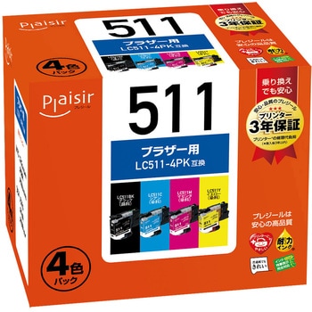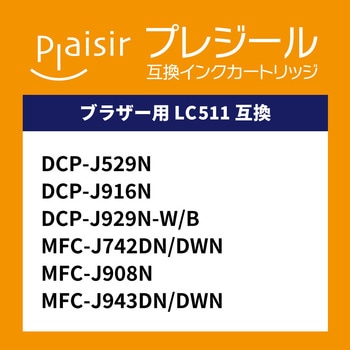 brother(ブラザー)用 LC511シリーズ 互換インクカートリッジです。ブラザーの売れ筋プリンターに適合、家庭用途からビジネス用途まで幅広く対応できるインクとなります。プレジールは安心の高品質。印字品質やインクの色味、印刷枚数など徹底的に検証。純正品と遜色のない美しい印刷の仕上がりを実現!純正品の使用に比べて約25~30%もコストダウンが可能です。さらにプリンター3年保証で、安心してお使いいただけます。