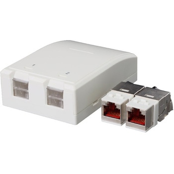 Cat.6A シールドモジュラージャック付き 露出型情報アウトレット ローゼットボックス 深型 2個口 キット品