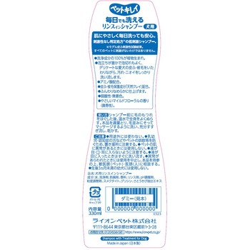 肌にやさしく毎日洗っても安心。刺激性なし判定処方*の低刺激シャンプー。洗浄成分の100%が植物生まれ。泡立ちが豊かで泡切れもよく、デリケートな愛犬の皮ふ・被毛をいたわりながら、汚れ・ニオイをしっかり洗い流し、ふんわりなめらかに仕上げる。アミノ酸配合。やさしいマイルドフローラルの香り(微香性)。
