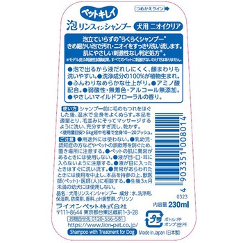 ペットキレイ 泡リンスインシャンプー 犬用 ニオイクリア - ライオンペットペットキレイ 泡リンスインシャンプー 犬用 ニオイクリア - ライオンペット