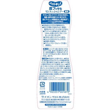 やさしく洗ってフケ・かゆみを抑える。肌にやさしい刺激性なし判定処方*。洗浄成分の100%が植物生まれ。泡立ちが豊かで泡切れもよく、愛猫の皮ふ・被毛のうるおいを残しながら、汚れ・ニオイをしっかり洗い流す。うるおい成分ソルビトール配合。ふんわりなめらかに仕上げる。弱酸性・無着色。やさしいフローラルハーブの香り(微香性)。