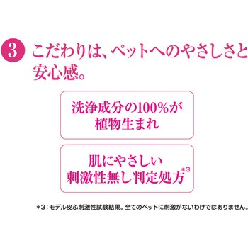 やさしい香りに包まれながら、豊かな泡で心地よく洗える泡タイプのリンスインシャンプー。手早く洗えて、ふんわりなめらかな被毛に仕上げる。きめ細かいクリーミィな泡で、肌への負担も少なく手軽にシャンプー。汚れ・ニオイをスッキリ落とす。洗浄成分の100%が植物生まれ。肌にやさしい刺激性なし判定処方*。シルクプロテイン配合。華やかなフローラルブーケの香り。