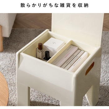 ツヤ感と丸みのあるデザインがレトロ可愛い収納スツール座りやすい丁度良い高さ軽量なので持ち運びもラクラク座面部分のフタを開くと収納スペースが!収納スペースの仕切りは取り外し可能足裏には滑りにくいキャップ付き工具不要の簡単組立