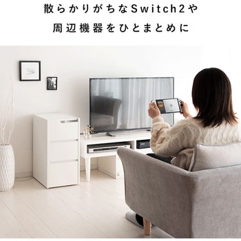 複数台のSwitchと周辺機器をまとめて収納できる便利なデザイナーズゲームワゴンインテリアから浮いてしまうSwitchを充電スタンドごと3台収納可能Switchを複数台お持ちのご家庭でも、お部屋の雰囲気を損ねることなくおしゃれな空間を演出容量のある引き出し付きで周辺機器もスッキリ収納背面オープン仕様で放熱対策もバッチリホコリをカバーするフタ天板付き隠しキャスター付きなので移動もラクラクテレビやソファサイドにも置けるコンパクトサイズ