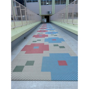 ラグーンマットは、クッション性と排水性に優れた設計が特長です。特にお客様からご好評いただいているのが、ジョイントで連結した状態のまま収納できる点です。シーズンオフの保管がしやすく、管理の手間を軽減します。また、軽量で扱いやすいため作業負担が少なく、設置や片付けもスムーズに行えます。カラーバリエーションも豊富で、施設の雰囲気やデザインに合わせた多彩な表現が可能です。表面には細かな突起加工を施しており、濡れた環境でも滑りにくく、安全性に配慮しています。さらに、カッターで簡単にカットできるため、設置場所に合わせて自由にレイアウトすることができます。