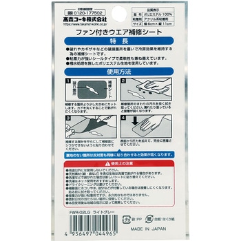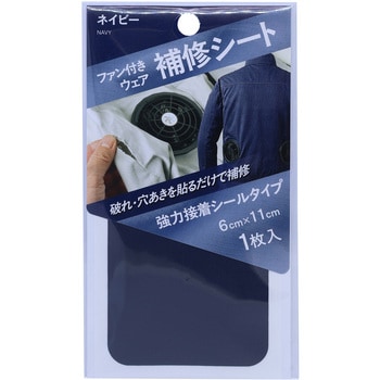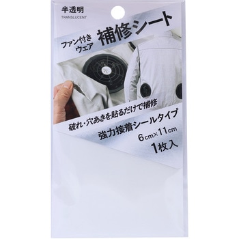 ファン付きウエアの破れや裂けの補修に最適!シートタイプなので、貼るだけでカンタン補修。粘着力が強く柔軟性があり撥水処理を施したポリエステル生地を使用しています。