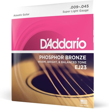D'Addario EJ23 は、温かく豊かなトーンが特徴のフォスファーブロンズ弦を採用したアコースティックギター用スーパーライトゲージセット。軽いテンションで弾きやすく、フィンガースタイルや繊細なストロークに最適です。明瞭な高音とバランスの良い中低域を持ち、幅広いジャンルに対応できる定番モデルです。