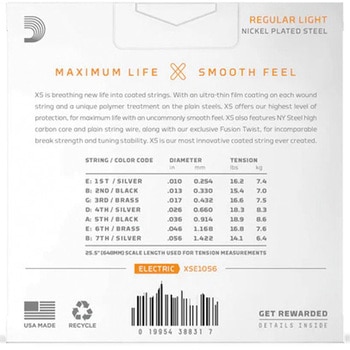XSE1056 は、7弦ギターで耐久性・音質・弾き心地のバランスを求めるプレイヤーに最適なライトゲージセット。低音の安定感と高音域の明瞭さを両立した、扱いやすい高性能モデルです。