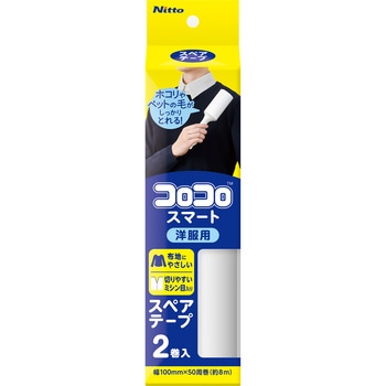 コロコロスマート30周本体の取りかえ用テープで50周(約8M)の切りやすいミシン目入りテープ2巻入。布地にやさしい洋服用コロコロスペアテープで糸くず、紙の毛、ペットの毛、花粉などの洋服についたゴミがしっかりとれます。カーペット用でオフィスのシュレッダー周りなどのお掃除に。強接着なのでしつこいゴミにも対応