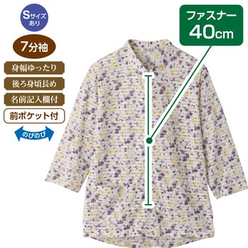 822103 7分袖ロングファスナー持ち手リングTシャツ