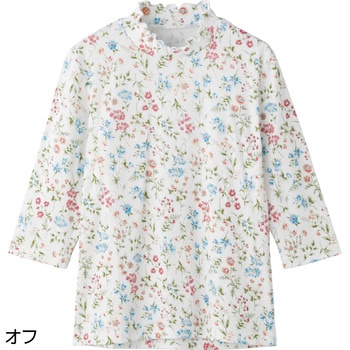 822186 7分袖綿100%フリルネックブラウス