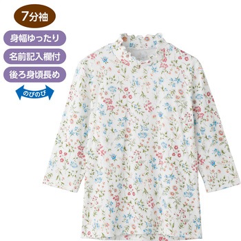 822185 7分袖フリルネックブラウス