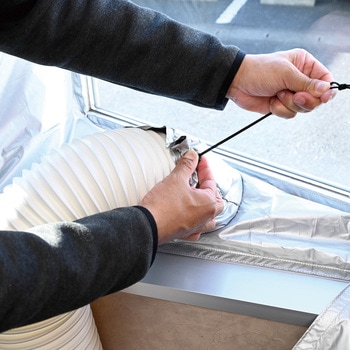 移動式エアコン対応 すべり出し窓用 排熱シートパネル 窓開口部 3辺合計140-260cm対応 排熱ダクト直径17cmまで対応 取付工事不要 冷却 面ファスナー