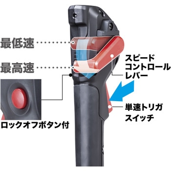 レバーにより無段階で回転数を調整可能。引き代の短い単速トリガスイッチにより指の疲労を軽減。