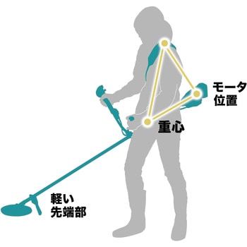 手軽に、気軽にしっかり草刈り、「後端モータ」配置で優れた重心バランス、22mLエンジン式同等の使用感(メーカー比)
