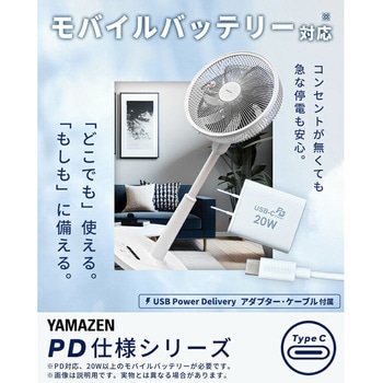モバイルバッテリーでも動かせるPD対応のDCモーター搭載ダイヤル式リビング扇風機