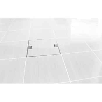 置床工法対応の非住宅向け、床タイル仕上げ用点検口置床工法、在来工法に対応非住宅に最適な高強度タイプタイル床の美観を損なわないパーティクルボード20mm+合板12mm×2枚に対応六角穴付きねじにより取っ手をロックし、いたずらを予防する簡易ロック付タイル厚8~12mmに対応