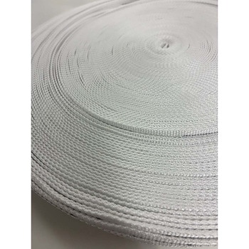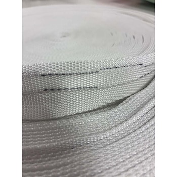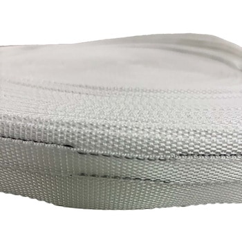 『二重織ベルト』は、ハトメ不要で横断幕を固定することができるベルトです。二重に織られたテープの浮き部分に紐やインシュロックを通して、パイプや柵などに固定します。二重織ベルトを幕の周囲に縫い付けることで、金属を使わずにハトメの役割を果たします。金属ハトメを使用しないことで製品に傷をつけず、廃棄時にそのまま捨てられます。また、印刷のデザインにおいても表側全体をメディアスペースとして活用でき、ハトメ打ち作業のコストも抑えられます。