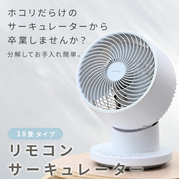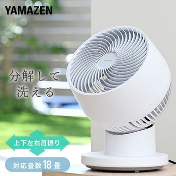 お手入れで悩まない 全分解できて洗えるサーキュレーター羽根径:18cm 3枚風量:5段階上下左右自動首振り機能フルリモコン付き入タイマー:1/2/4h切タイマー:1/2/4h工具不要で前面ガード・背面ガード・羽根の取り外し可能でお手入れしやすいメモリー機能搭載:電源プラグを抜かずに運転する場合は停止前の設定で運転が始まります箱を開けてすぐに使える本体にリモコン収納部付き90度上向きで室内干し時の衣類乾燥の補助に便利畳数目安:18畳まで