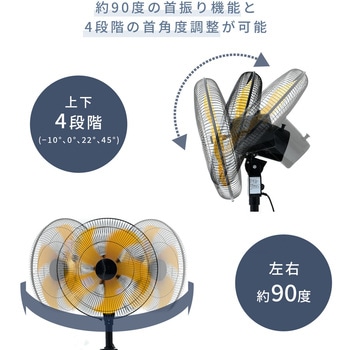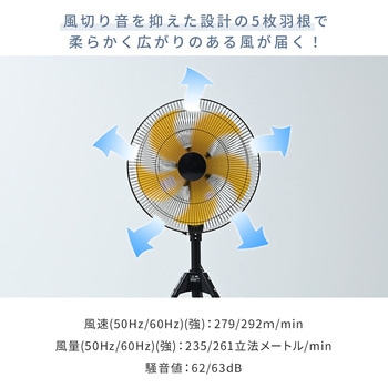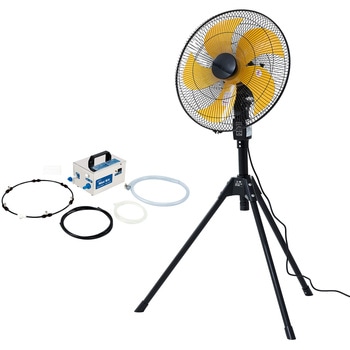 用途工場やガレージ、体育館、会社など広い空間でのご使用に。工場扇風機 大型扇風機 業務用扇風機 三脚式 サーキュレーター 送風 換気 熱中症対策その他【噴霧ノズル】6個付属品噴霧ノズル×6、吐水チューブA(2.4m)×1・B(0.1m)×2・C(0.15m)×5、チューブ継手A×1・B×6、エアー抜きバルブチューブ(1m)×1、自給用給水ホース(1.2m)×1、竹の子継手×1、ホースバンド×1、フィルターパッキン×1、結束バンド×7セット内容扇風機+ミストキット質量(kg)【本体】6.6【ミストキット】4色羽根:黄色電流(A)(強)1.41/1.68(50Hz/60Hz)消費電力(W)(強)129/165(50Hz/60Hz)電源AC100V(50/60Hz)風量(m3/min)(強)235/261電源コード(m)2.4寸法(cm)【ミストキット】28.5×16.5×17.5消費電力(W)(50/60Hz)30 / 31騒音値(dB)62/63風量3段階消費電流(A)(50/60Hz)0.34 / 0.35風速(m/min)(強)279/292(50Hz/60Hz)保証期間1年寸法(幅W×奥行D×高さH)(cm)77.5×68×115-135電源コード約2.4m噴霧量(L/min)0.18噴霧圧力MPa(kgf/cm2)1.6内容量1セット