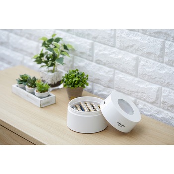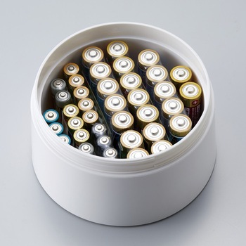 もしもの時に役立つ単3形と単4形乾電池が収納できる多機能ケースです。スライドスイッチでモード切替可能、1電池残量を測るチェッカー機能、2LEDで周りを優しく照らすランタン機能、3スマートフォンを緊急時に使えるようにする。簡易充電機能が乾電池収納とは別に使えます。普段の乾電池の管理にも役立つ、周りに溶け込むシンプルなデザインです。電池残量とLED点灯は単3形でも単4形でも使用可能。