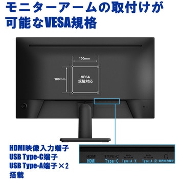 USB Type-C 1本で映像入力と最大65W給電が同時に行える利便性の高い23.8型フルHD液晶ディスプレイ。