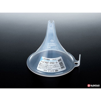 詰め替えや移し替えに使えるクリアタイプのロートです。ある程度粘度のある液体でもスムーズに流れます。