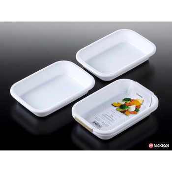 料理の下ごしらえに便利な琺瑯風のバット。2枚セット。クロスして重ねてもズレにくい溝付の底。電子レンジあたため可。