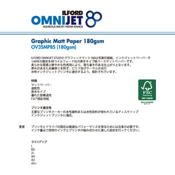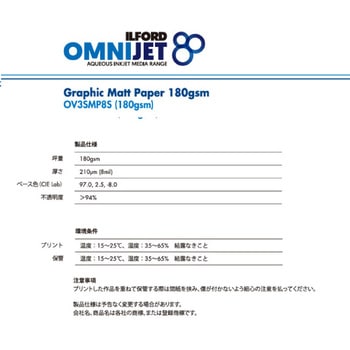 イルフォード オムニジェット スタジオ グラフィックマット180は、写真館、スタジオが求める高品質プリントに対応したマット調のプロフェッショナルフォトペーパーです。 紙ベースの厚手マットコート紙で、無光沢のスムースマット面質です。 広い色再現性、耐スクラッチ性により優れた作品に仕上がります。