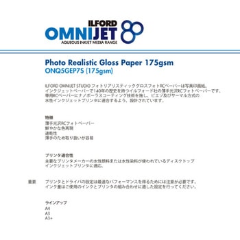 フォトリアリスティックグロスペーパー175gsm  KG 150枚 - イルフォードフォトリアリスティックグロスペーパー175gsm  KG 150枚 - イルフォードフォトリアリスティックグロスペーパー175gsm  KG 150枚 - イルフォード