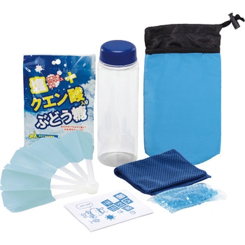 保冷温ドリンクケース・ボトル・プラ扇子・クールタオル・保冷剤・暑さ対策の手引き・塩クエン酸ぶどう糖