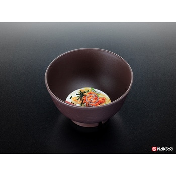 高台に水切れを良くする切り欠きがある木目調のお椀。スタッキング性が高く、複数でもコンパクトに収納が可能。電子レンジあたため、食器洗浄乾燥機使用可。