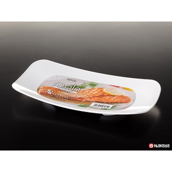 磁器のような風合いの長方形の長皿。スタッキング性が高く、複数枚でもコンパクトに収納が可能。電子レンジあたため、食器洗浄乾燥機使用可。