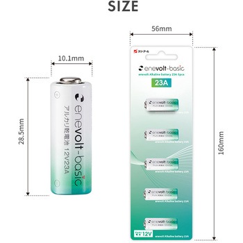 A23(12V)規格の互換電池です。A23/L1028/LRV08/MN21/V23GA 表記の機器に対応しています。キーレスエントリー、ワイヤレスチャイム、ガレージドアリモコン、ホームセキュリティ送信機などの電池交換におすすめ。