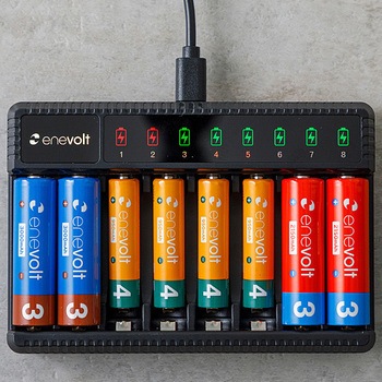 単3形・単4形のニッケル水素電池に対応したUSB充電器。最大8本を同時に充電でき、赤と緑のLEDで充電状況がひと目で確認できます。Type-Cポート搭載で、家庭のACアダプタはもちろん、モバイルバッテリーや車内でも使用可能。軽量コンパクトな設計で、日常使いから非常時の備えまで幅広く活躍します。