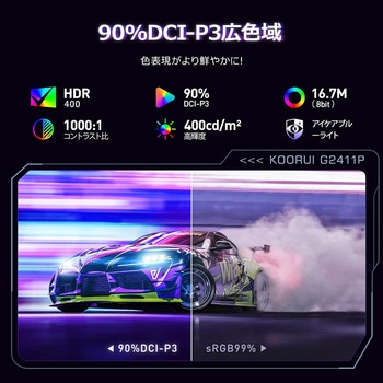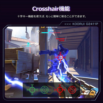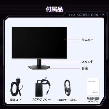 KOORUI G2411Pはeスポーツ特化の24(23.8)インチゲーミングモニターです。 1秒間に200回映像を書き換えるので 一般的な60Hzのデイスプレイより、3.3倍高速に映像を表示させることになり、なめらかで美しい映像を表示可能です。 IPSパネルとブルーライト軽減機能が長時間の作業でも目に優しく、疲れにくい。どの角度から見ても色変化が少なく、広い視野角を提供します。 1msの応答速度で、より映像が滑らかになり、FPS・TPSやアクションゲームに最適なゲームモニターです。 AdaptiveSyncテクノロジー搭載し、モニターのリフレッシュレートをグラフィックカードのフレームレートと同期させ、入力ラグを最小限に抑え、ゲームやビデオの再生中のカード生成を削減または完全に排除します。 明暗のディテールを精密再現し、暗部の敵影も鮮明にキャッチし、輝くエフェクトも色褪せない高ダイナミックレンジです。 フリッカーフリー技術を搭載され、従来のLCDで発生していたフリッカー(ちらつき)を排除し、目の疲れや障害を防ぎます。 タイムベースやターン制のRTSゲームをプレイする際に、目標とするゲームレートを測定する機能で、5種類の時間間隔を選択できます。 ゲームモードごとに最適な表示設定モード値を得るために、さまざまなモードを選択します。