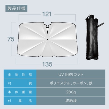 傘型のサンシェードでパッと開いてフロントガラスに設置することができます。