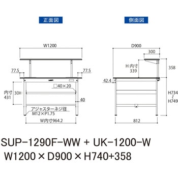 75710918SUP-1290F-WW+UK-1200-W50.6740(架台部分除く)1200中間棚板:50/枚(均等耐荷重)、架台:10(均等耐荷重)中間棚板:W956×D785/枚