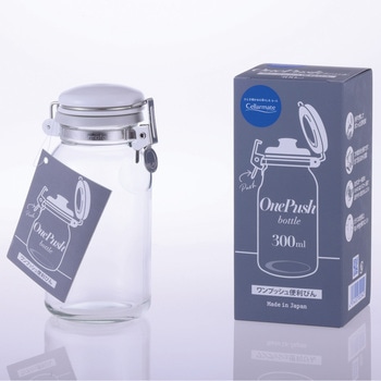 仕様ワンプッシュ便利びん 300ml材質本体/ソーダライムガラス、フタ/ポリプロピレン、フタ止め/ナイロン、注ぎ口/シリコンゴム、パッキン/シリコンゴム、金具/SUS304(18-8ステンレス)寸法(mm)胴径68×高さ145×口径40容量(mL)300質量(g)240耐熱温度(℃)本体/耐熱温度差42、フタ/耐熱温度120内容量1個