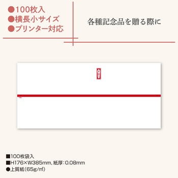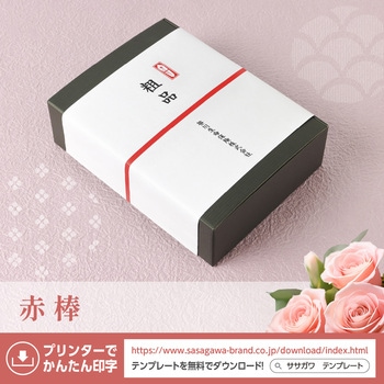 各種記念品用に使用するのし紙です。赤棒水引とのしが印刷されております。紙質はプリンター印刷に適した厚口の上質紙を使用しており、お名前や記念品、商品、景品、粗品などの印刷は、ササガワのホームページからテンプレートを無料ダウンロードすれば簡単に印刷もできます。