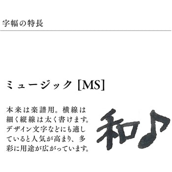 ミュージック:本来は楽譜用。横線は細く縦線は太く書けます。デザイン文字などにも適していると人気が高まり、多彩に用途が広がっています。